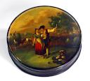 ca. 1790 enstand im belgischen Badeort Spa ein weiteres Zentrum der europäischen Lackwarenindustrie mit Dosen, die meist Hafen- und Landschaftsbilder in farbiger Ölmalerei boten